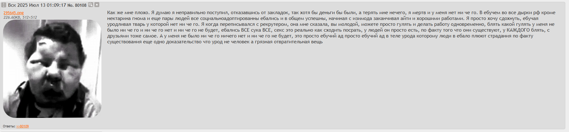 Да ладно бы у него были серьезные проблемы, типа чтобы он даже на бытовом уровне с трудом функцоинировал. Так идиот в дайвинчике сидел, кладменом хочет устроится. У дегенерата буквально 0 реальных проблем в жизни.