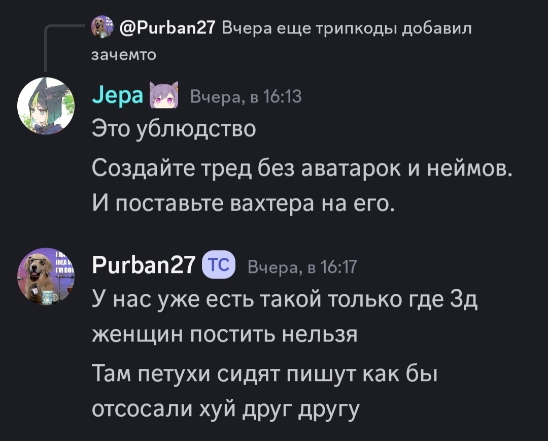 Понятно, посмотрим что здесь будет через месяц или два. Нет я не ухожу идти мне некуда понимайте как хотите, все равно. Аватарить вниманиеблядством не буду больше. Ничего нет кроме срачей и выписываний в нормисы или срачики. В лохушатнике тем более смысла сидеть нет никакого, и я не вписываюсь никуда. сейчас я максимум ананимка в ридонли, всем похуй язнаю , но напишу тем другим чтобы было понятно. я тут и никуда не пропал, прост не аватарю больше. не нада ничего спрашивать. Узнать судьбу аватрок и как у вас дела я смогу итак, без вниманиеблядства, а помочь вам никак, ведь я никто без своих попечителей