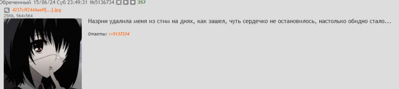 >>5562173 >Да даже скриншот тут постили где он отвечал "Ебался два раза. Хуйня" или как-то так. так это не дотакунямалыш был, где пруфы? любой может его аву скачать, куклу настроить и от его лица постить тем более на скрине даже без куклы было