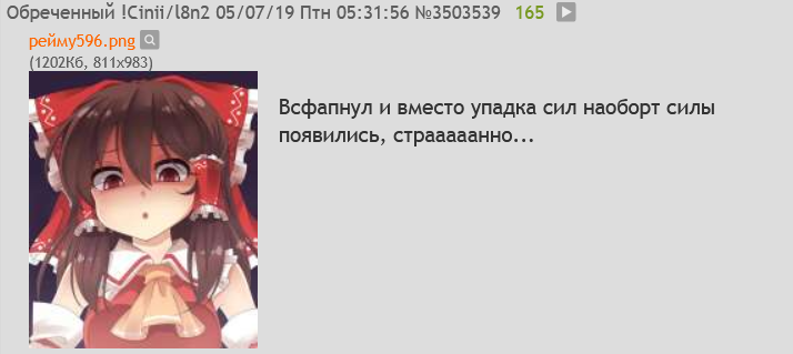 >>5621188 > Так о том и речь, ты как дотахуйло, если "по-хорошему" не получается, он начинает пакостить вдвойне. По сути, это значит что он вообще не сожалеет. Выговорись. Может тебе и правда легче станет слушай. Я в любом случае расковырял до матершины. Но ещё раз повторю. Мне жаль что я так поступил с тобой и вайпал борду. Я извиняюсь и впредь с моей стороны подобного не повториться, обещаю. Это тебе понятно? Ты в состоянии осознать это? Это не страх, а осознанное раскаяние за содеянное насколько мне позволяет моё физическое и психическое состояние. Ты сделаешь о чём тебя просят? > По сути, это значит что он вообще не сожалеет. Я не могу отвечать за других людей. Что вы там не поделили меня не касается, как бы это не звучало. У него справка и пенсия. Это говорит о много. Не веришь, можешь попробовать получить такую же. Но учти - это сложнее нытья. >>5621189 > Я не знаю, что ты можешь сделать, мне ничего не нужно. Я мог бы запросто наполнить твою жизнь счастьем. Вредить как мы убедились у меня не получается, а вот помогать - это я запросто. > Ты называешь моих недоброжелателей и врагов друзьями, я же не могу запретить тебе с ними водиться, да ты и не захочешь. Ты же знаешь поговорку всем мил не будешь? Ах, виноват, всем лил не будешь? Знаешь. Но давай серьёзно, ладно. Мне перестать общаться с теми, кто тебе или кому то из твоего окружения не нравится? А ты отдаёшь себе отчёт, как это звучит?
