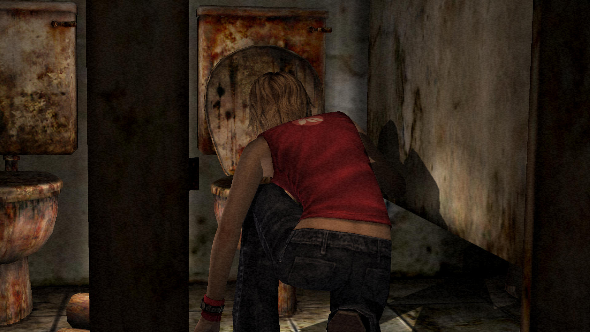 Зато это самая страшная часть - огромные разнообразные монстры, горловое пение в ОСТе, мерцающие кровавые текстуры... В моменте с отражением в зеркале умер? Где сначала обычное отражение, а потом оно замирает, и начинает кровь идти сначала в нем, а потом и в реальной комнате. Если не выбежать, Хизер умрет.