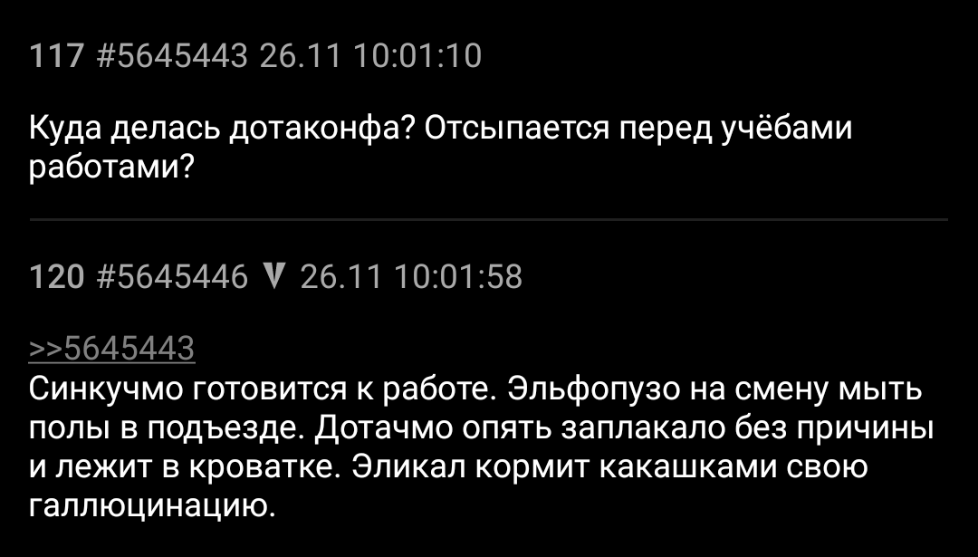 Такие люди как Дилд существуют только когда на них обращают внимание. Без чужого взгляда они рассыпаются. Тут хорошая площадка, чтобы фармить себе подпитку, т.к. посетители раздела психически нестабильны и часто не могут просто игнорировать.
