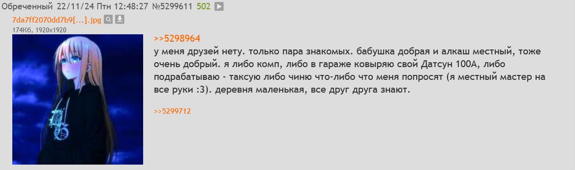 >>5587702 Если память не подводит с пару лет активно постил. Верг спиздеть не даст, что нахваливал в то время за качественный постинг Если конечно он не забыл Ну а потом просто ушел и вот год-полтора не заходи сюда как-то. Вообще в целом не особо где говорил с людьми. От силы на минутку, но там то мочаратор по приколу сносит пост, то мне впадлу постить и рид онли.