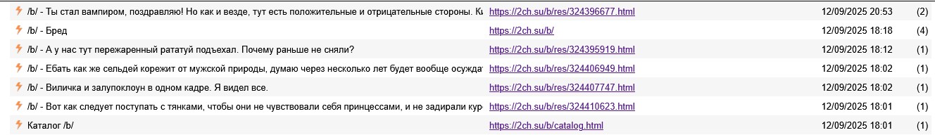 >Спасибо что общаешься со мной иногда Да забей, мужик. Это уже концепция агонии своего рода. В принципе подвернулся, потому что узнал - что ты вылез опять. Чуть после создания т.н Верготреда решил выползти таки. Хотя немного лукавлю конечно, хотелось как можно дольше с говняком не соприкасаться. Тут нынче одни банальные впопудаваши существуют. Своего рода отвращение что ли возникает\даже открывать+читать не хочется. Запостить по сути нечего да и некому\только одноклеточный ресентимент на местную сёмгизацию. Поэтому базара зеро - если есть чавой накалякать, ты пиши главное. Чёнидь там разовьём\посмеёмся немного да придумаем. Уныло мне блядь\как будто на сосаче вообще чего-то концептуально радостного по пальцам в год ныне считается. Как говоривал Серёга: А раньше же дни были тёплыми\у твоей души шкура тёплая. Сумбурно как будто наколякал ответец\меня в последнее время от длиннопостов вообще тошнит. Не могу их ни читать, ни писать\вон скок этот всё откладывал. Помню так вообще дооткладывался\вникуда ушли посланья по большому счёту... Я так сказать и внетреда с тобой немного беседую. Не помню конкретно почему, но однажды во время прогулок по лесополосе ака прудовым буеракам пару мест в честь постеров назвал. Возможно думал над ответами в тредах\может просто какую мысль прокручивал про конкретного человечка\али вообще в этот же день или ночью загодя букавыми перекидывались. Так что всё, теперь есть Верговское место, где подосиновики растут бывает. Я так к ниму подхожу - сразу начинаю с обращения, Верг - мне заносик грибной надо. Последние разы кстати не балует меня Верговское, чёт на лысом там. Зато моя личная заносная полянка всегда чего-нибудь грибского да мене припасает. Бывали времена, когда только там и удавалось подсобирать. скоро последний поход в этом сезоне\это печально