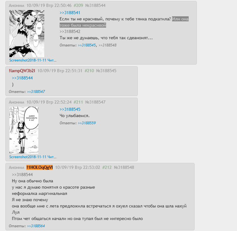 >ты только закапываешь себя на днище. Хотя, казалось бы, куда уж ниже. Напомнило фкея, который прогнал Элю руководствуюсь правилами, после чего прогнал меня руководствуясь... своим ресентиментом xD Закапал себя так глубоко, что уже никто его не откапает, и сам он со дна не вылезет. Ну ничего, зато у него есть десяток скриншотов с его обидчиком. Пущай сидит годами, смотрит и подпитывает свой ресентимент.