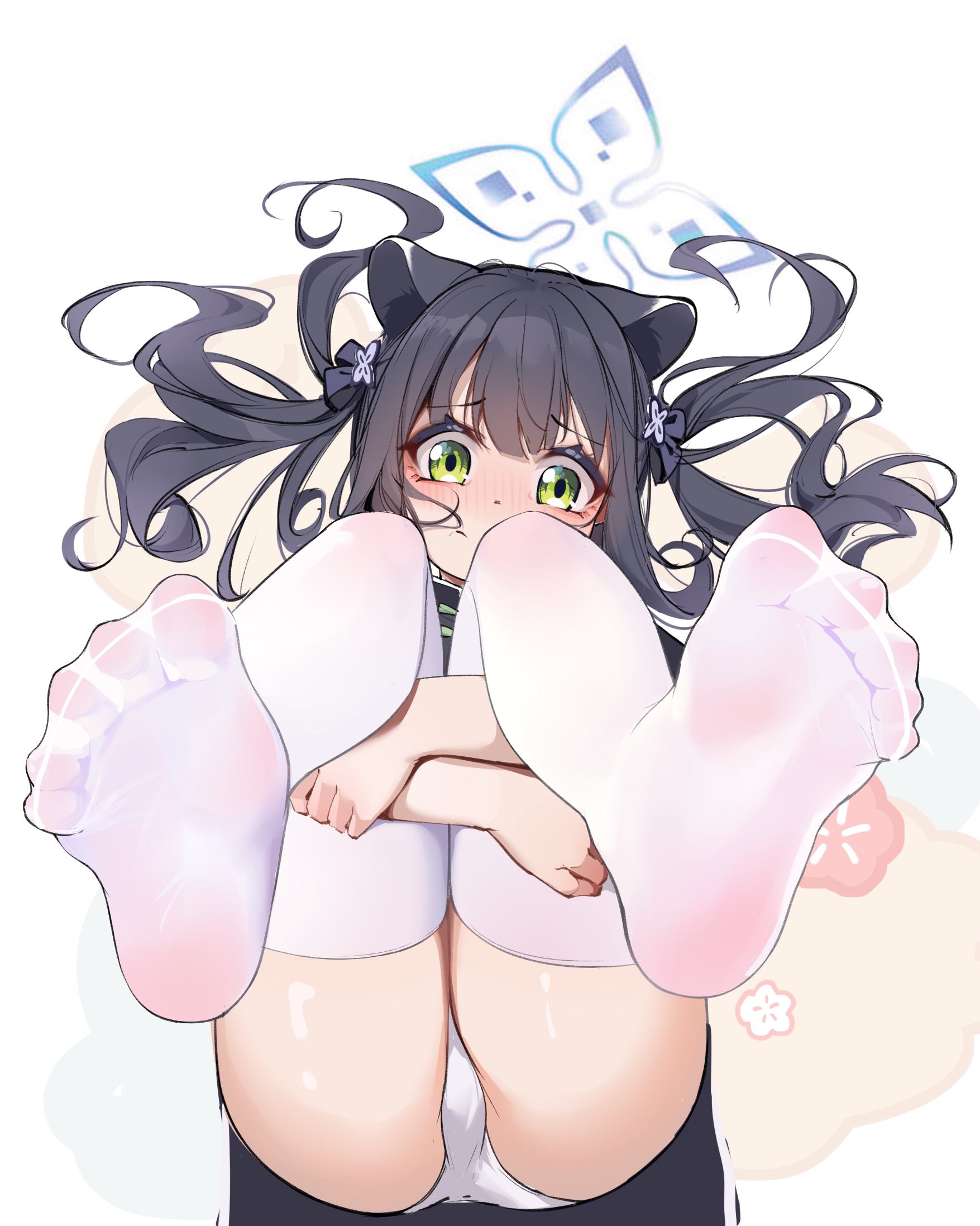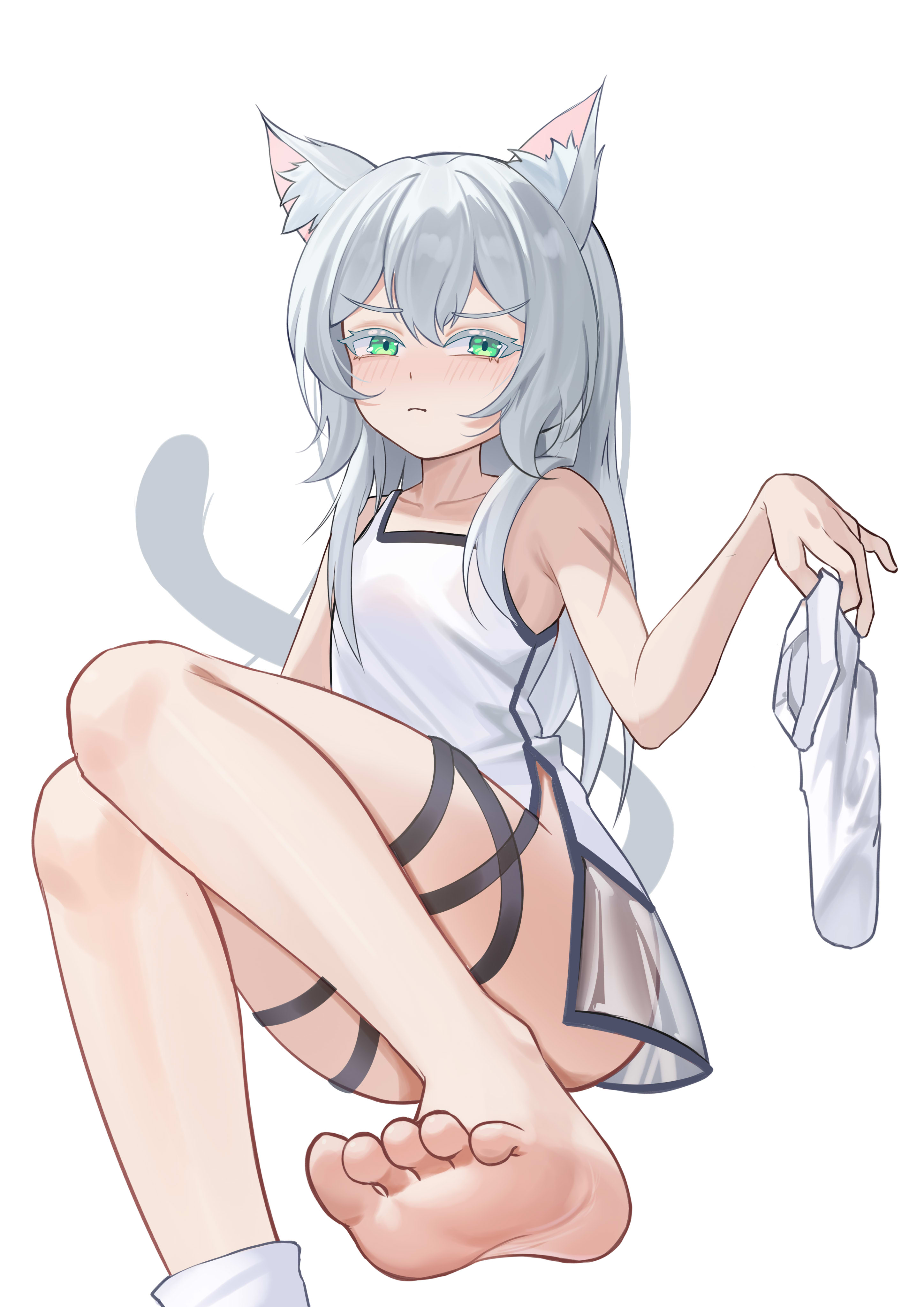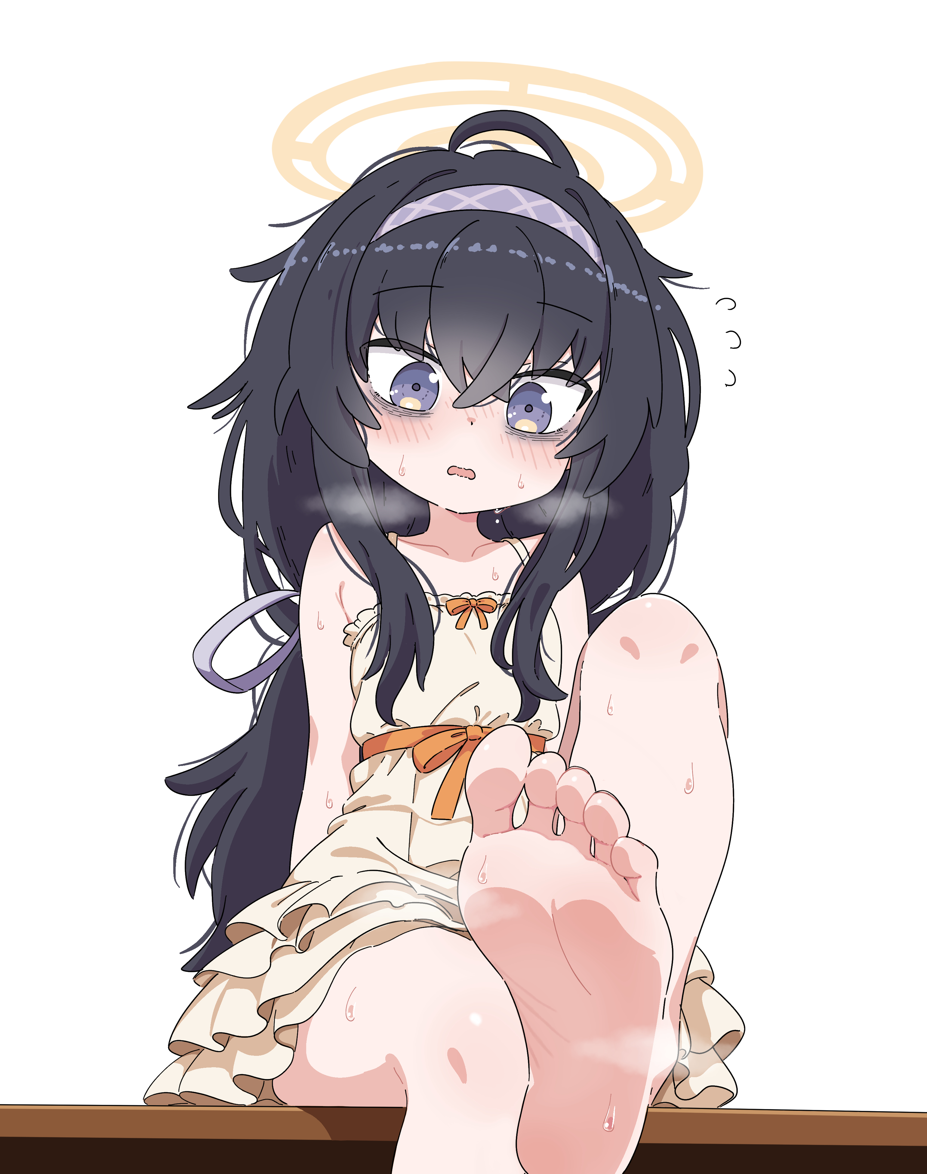 blush, shy, pleasure, closed mouth, look to the side, hot breath, (steam, sweat, smell), nude, small chest, small nipples, skinny, cum on feet, 5 toes on each foot, (feet focus, legs up, close-up feet, feet very close to the viewer, raised to the viewer), (spread toes, smelly feet, wet armpits), cute pussy, full body,