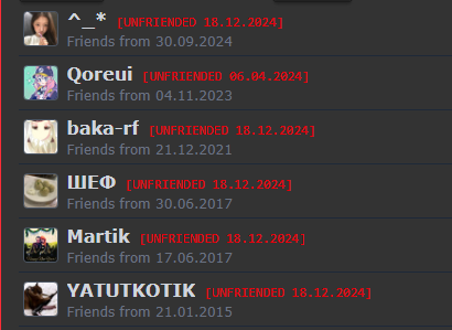 >>5621782 Они сами добавлялись, а мне морально тяжело отклонять (не хочу показаться чсвшным мудаком). Я и скаммеров раньше всех добавлял, пока не сгорел с них.