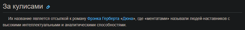 Ментаты-наставники - пастилки из Фоллачика, Владимир Харконнен - лорд-вампир Харкон из Скайрима. Сколько же у нас всё-таки общего. А, ну и пряности - это Хора, хотя в детстве тоже любил кубики, лол. Последний раз в 2016 их грыз ещё помню, уже не те были по вкусу.