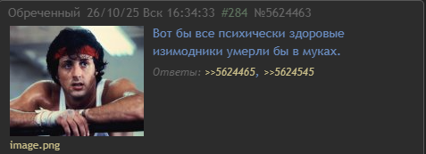 >>5625402 >конкретно изимодникам психически здоровым которые травят душевнобольных хикк, желали смерти. На скрине почему то написано "все", там конкретики не было.