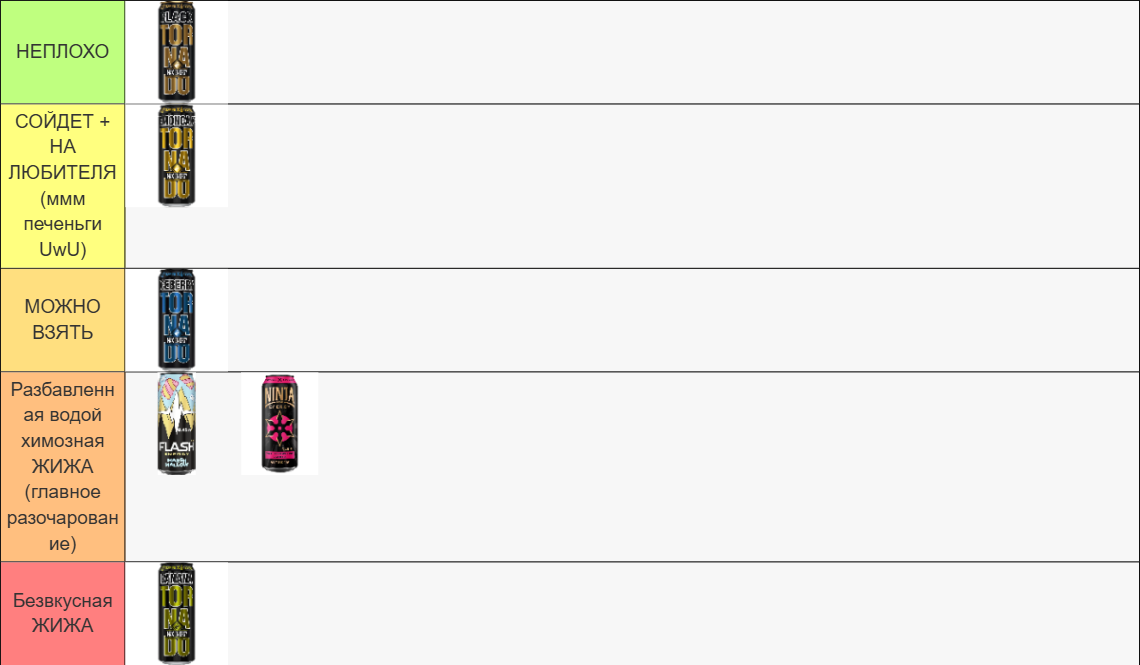 >>5626752 Ну есть Power Torr, он дешевый, но у него очень мощный вкус насыщенный и аромат, пусть и химозный, зато мощно-химозный, аж запах на всё помещение.. А современные энергетики какие-то зумерские что ли, все как один имеют слабенький жиденький монотонный вкус который совсем не держится.. Даже от чая послевкусие дольше держится чем от этих, лел..