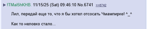 >>5639821 >я говорил о своих предпочтениях а ты резко начал мне говорить про когото там Ну да, всё верно. Вдруг ты кого-то там обидел и этот кто-то там ущемился. Ахуел да? Извинись
