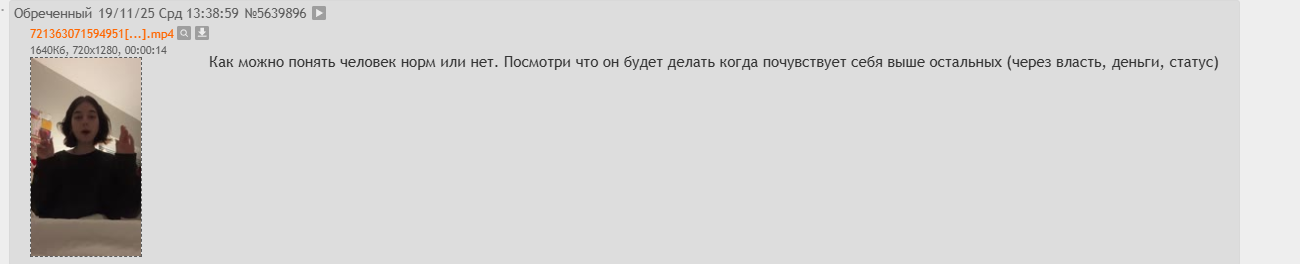 >>5639494 Не прячься как трусливая крыса за чужими неймами, то "выдавливание" и это настоящее, которое происходит сейчас, даже близко несопоставимы и несоизмеримы между собой. Это просто факт. Никто за ними не бегал и не травил их бессмысленными оскорблениями из под анонима, как это сейчас делается каждый день по 100+ постов стабильно. Были обычные тет-а-тет срачи. И любой кто скажет что я "выдавил" фкея это пиздабол наглый. Даже если он сам так считает, что его выдавили, ну пусть посидит ридонли и не копромат собирает в папку, а посмотрит и понаблюдает за настоящей травлей.
