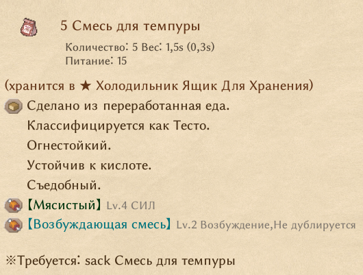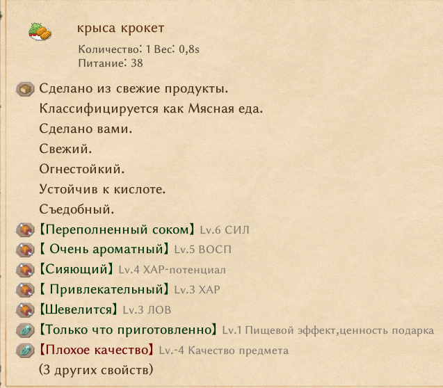 >>5646370 В рецептах проходит как рыба. На вкус наверное как рыба не знаю, но статов много дает. Мин максеры конечно знают способы получше, но по рп с кайфом, ловим кита из лужи.