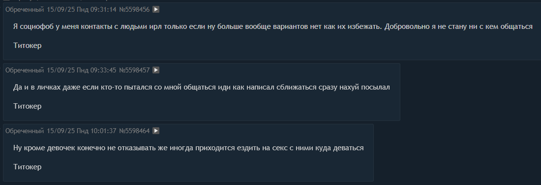 Не знаю чего так кто-то кого-то называет либо гейцелом, либо инцелом. Просто странно это все, ведь артики пощущаю...поща...выкладываемые анонами могут содержать развратный уклон как-то связывается с требованию организма и социальности в некотором роде. Картинки красивее реальных людей и вряд ли можно сексуализировать. Реальный секс не столько пугает, а отталкивает, ведь у геев там ну...и попы откуда причинно что-то выходит и просто мерзко. А у девушек от туда другое льется. Понимаю, что нрежен, но блин это мерзко. Смотря картинки и его прорисованность ты как бы иногда можешь восхищаться таким. А реал, ну