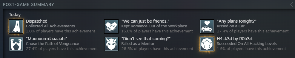 >>5660317 Ачивки нужны чтобы дополнительно фиксировать собственный прогресс.. Дополнительный дофаминчик дают.. А если тебе ничего не нужно (звучит очень нормисно), то зачем покупаешь вообще? Пирать тогда уж..