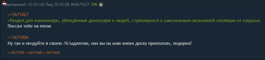 >>5671135 > иногда после долгого хикканства После долгого терпения в 4-х стенах* > У всех разная жизнь Пусть тогда не заходят в раздел rf, почему они именно сюда заходят, когда прямым текстом написано что это раздел для хикк которые изолируются от социума? Что ты мне пытаешься тут доказать? Вы тут пытаетесь наоборот все дружить и как то влиться в социум, вы не хикикомори и являетесь инородным объектом для этого раздела
