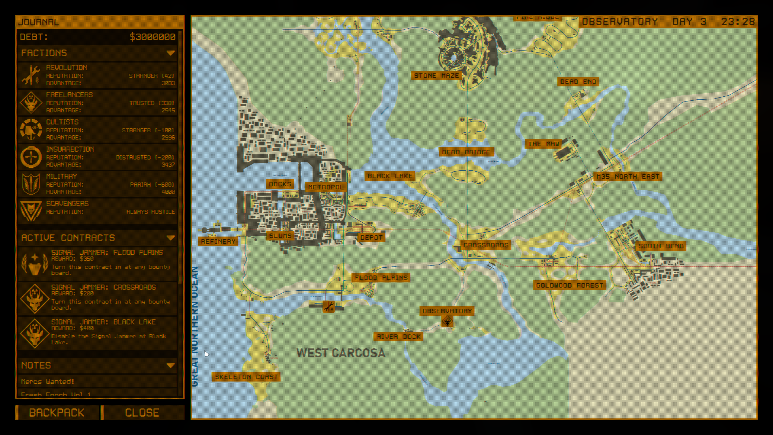 на западе, даже чут-чут на севере пипец насрано патрулями NFTA а они сильно враги, поможет разве что шайтан-маскировка, которой нет