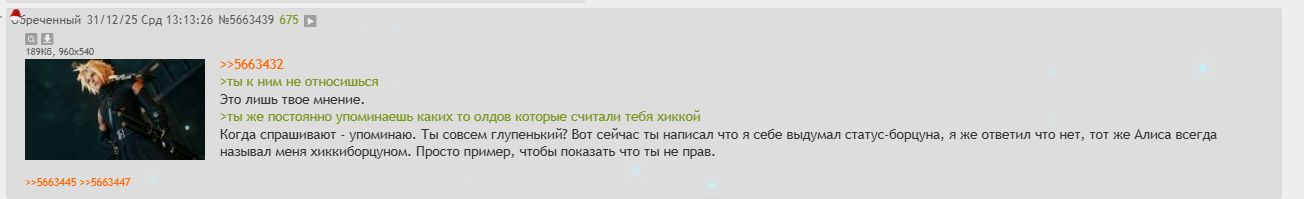 Конечно люди не меняются. Люди никогда не меняются. Каким был таким и остался, с кринжовыми проекциями, выдумками и перефорсами. Самое смешное сам же постоянно обвиняет меня в том, что я не поменялся. Сам же писал это про того же аврора/тиктокера сотню раз например. Просто у субъекта один и тот же человек превращается из хикки в социоблядь, инцела, дауна и травителя, а затем обратно по 5 раз на дню в зависимости от того, написал ли он приятное или неприятное. С каждым вторым в разделе фактически происходило. И субъект ещё что-то про женский склад ума говорит.
