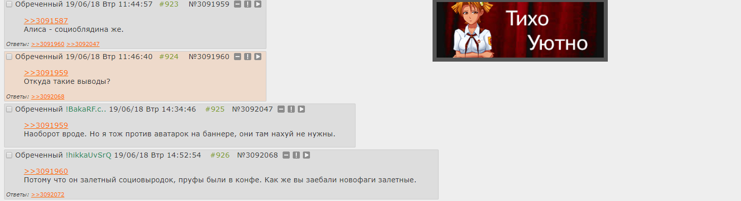 А Алисофага за такое подтравливание исподтишка 100% ждёт карма. Хотя какая карма, ему нормально сидеть было даже при Селюке, когда все свои фотки лиц постили, когда раздел состоял из социоблядей, студентиков и нормисов.