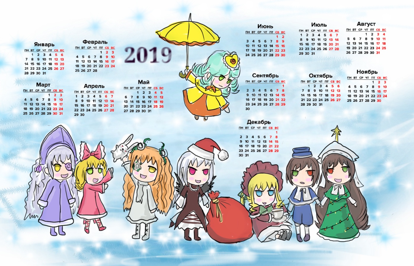 Шинку, знаешь Падору-падору? Можешь нарисовать кукол в подобном стиле (тем более, что скоро новый 2019)? Пазязя