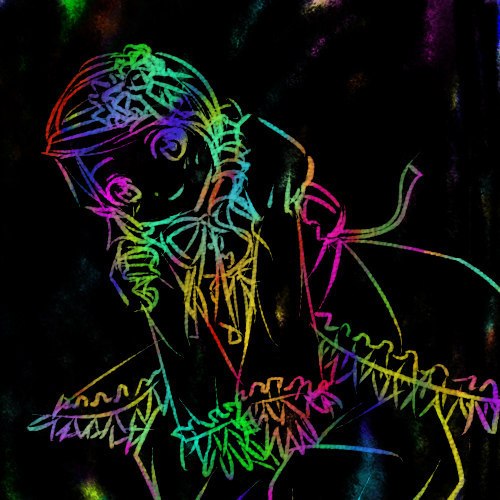 И картину такую, в целом мрачную сделать, а задний фон пустым и черным, символизирующим пустоту, а края картины обвести таким … выцветшим зелёным контуром.
