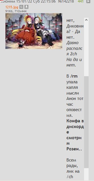 >>142064 Ога. Прикинь, розенфаги, кажись, реально чуть ли не самый бордовский контингент. Такое впечатление, что все эти традиции, приятная атмосфера и тому подобное интересны только нам. >>142065 Не знаю. Маршрутизатор меня спас, узнал только наутро. А вчитываться в писульки эти мне не недосуг. >>142066 Не, там Сусека на Веспе, кажется, была. Но эта картинка тоже мне знакома. Не помню только, кажется, я её уже в новогодние видел. >>142068 Ну это же не значит, что нужно срать чем попало, верно?