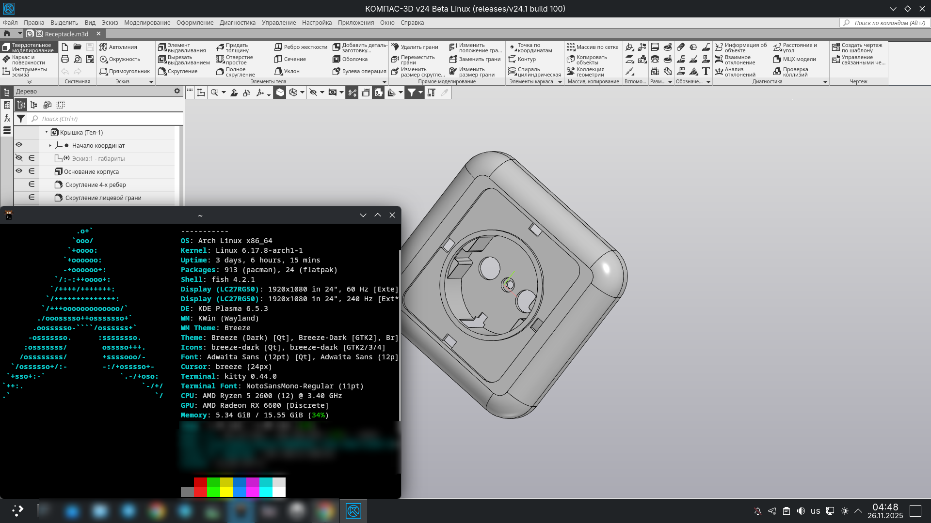 >>3674566 >фреекаде Да в этой хуете только БОБЫШКИ ВЫТЯГИВАТЬ. Если бы автодески портнули фьюжн360 на линукс это была бы бомба, т.к. там не хватает полноценного КАД, его литералли ноль. На гитхабе был проект по портированию ф360, но он умер год назад, т.к. автор сдался. Так что просто ждём теперь ломаный компас, а пока дуалбут в винду. Есть, короч, аналог ф360 по смыслу - shapr3d, работает через браузер и имеет всё нужное в себе, но там подписка.