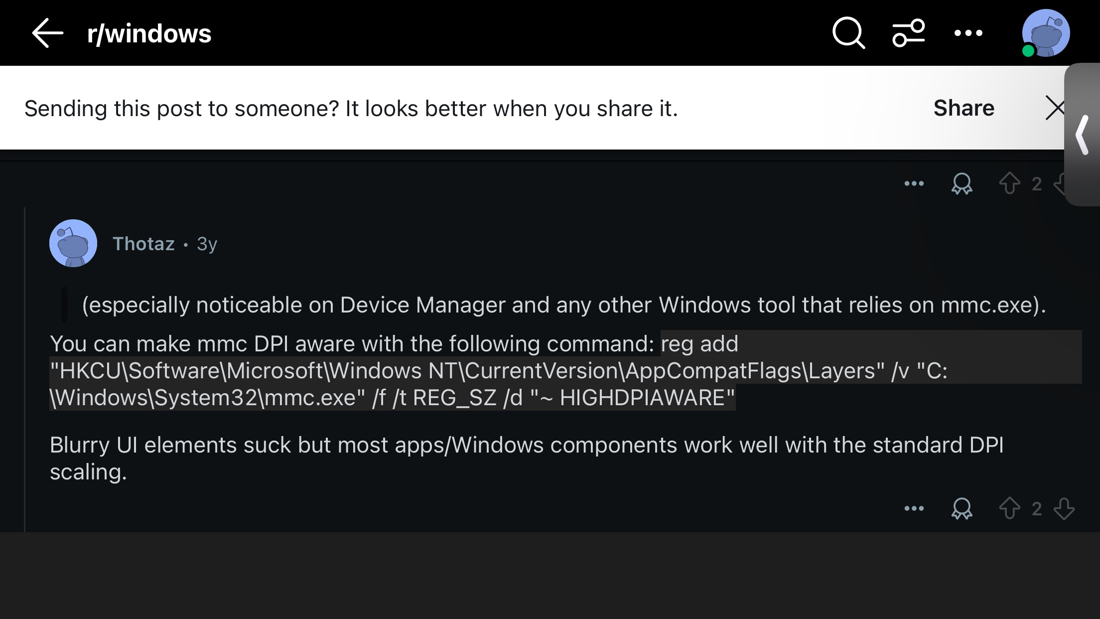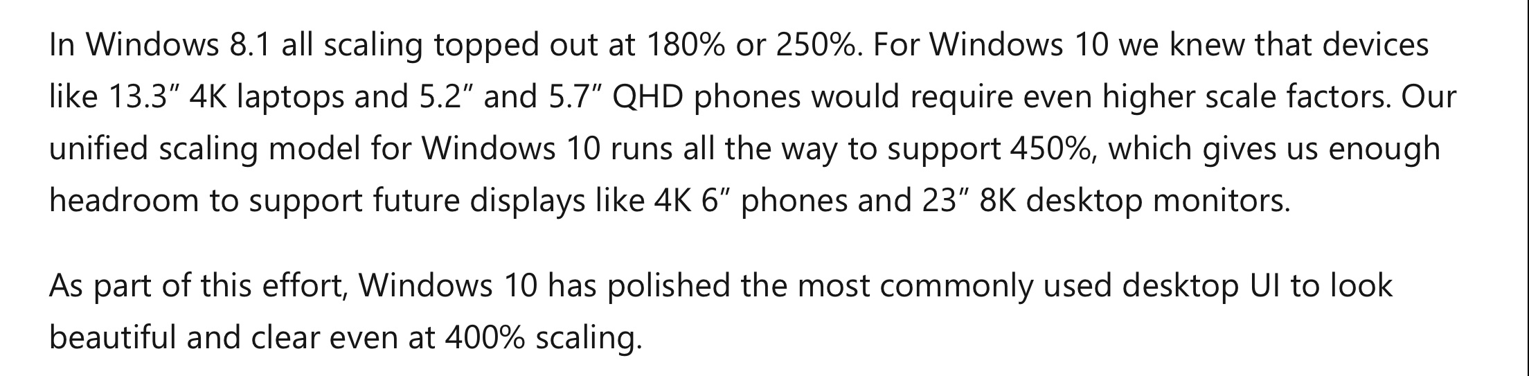 >>3604037 И тут надо помнить, что кто ноуты подрубает к теликам или проекторам - для них всё это тоже актуально - совсем другой DPI. Чобы не было мыльца ни на каком экране, надо Per-Monitor v2 масштабирование кароч