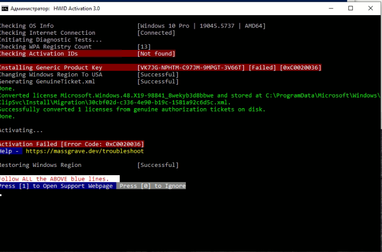 >>3598531 Не нужно никакой регион менять, нужно запустить установочник, получить ошибку "Подождите, не торопитесь", закрыть установочник, ввести команду, и запустить установочник заново. Ты чего-то нахуевертил своими ручонками.