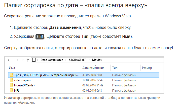 Но самое ебанутое после семерки 3. сортировка по дате изменения, по убыванию. Папки всегда снизу, сначала файлы. Симметрично для возрастания.