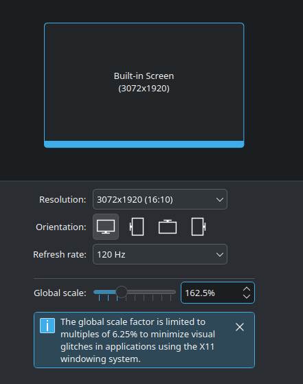 Скейлинг нормально не работает (курсор настраивается отдельно, артифачит, полоски по краям экрана), требует перезапуска всей сессии Нет percise скролинга, только построчно Раскладка переключается и потом возвращается назад, когда отпускаешь alt-shift Нет vrr Жесты в FF не работают Статтеринг