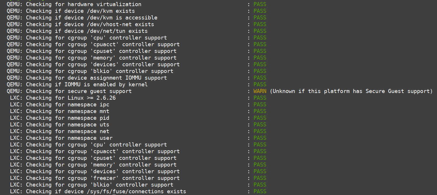 >>3606590 Можешь объяснить? Особенно вот эту строчку: "QEMU: Checking for secure guest support : WARN (Unknown if this platform has Secure Guest support)"