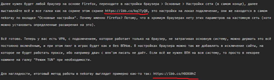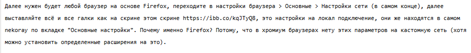 Анонче, пытаюсь настроить nekoray, но из этого гайда https://pastebin.com/ExTpuaPp все картинки давно отвалились и я не знаю какие галки ставить в firefox. ПАМАГИТИ