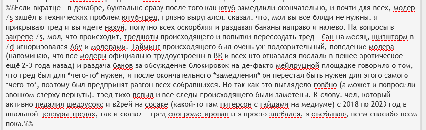 >>3614724 >Тоже самое слышал про Дискорд Про Дискорд никто не знал, кроме пары финкарей и самих вояк, которые этим пользовались. Кроме того, слышал, что бан дискорда зафорсили сами лампасы, т.к. опасались, что фид перехватывает барен и направляет хохлам (возможно даже не безосновательно, я не знаю, как робит дискорд, ибо никогда им не пользовался). Про Шульман даже смотреть не буду, что она там говорила и когда - это чисто идиотос в греческом смысле этого слова. >>3614741 Я не вижу, как это может помочь в подготовке. Это, по-сути, самый непопулярный мув в глазах молодежи, возможно, вообще за весь период правления нынешней системы. Если подготовка, то надо было наоборот по-максимому откручивать гайки, где это не критично и лизать им дупы, чтобы потом было легче прогреть на джойн к армии. Вместо этого им просто харкнули в еблет и даже не завезли каких-то методичек ломам, чтобы это как-то объяснить. С ютюбом хоть про устаревание оборудования что-то пукали, тут просто воды в рот набрали. Мне это наоборот напоминает какой-то внутренний самопрогрев, типа тех перестроечных времен, когда партийные бонзы застопорили доставку бухла и курева в магазины, а потом сами же начали выводить работяг, чтобы качнуть ЦК.