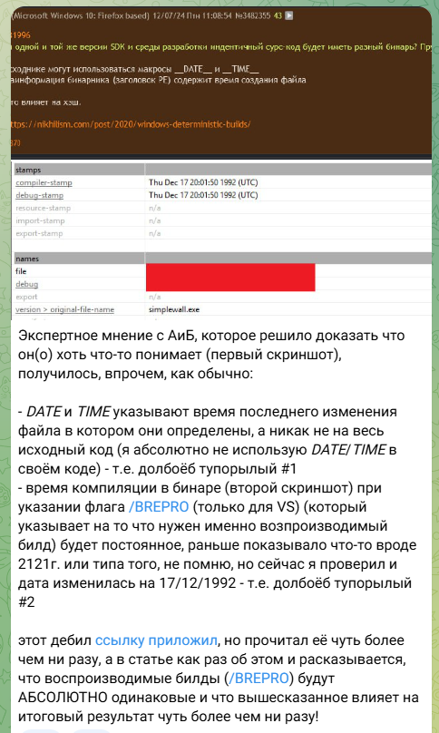 Реально гений. Когда видишь отзывы о срабатываниях антивируса, посылы нахуй при получении ошибок сборки, несовпадение хешей при сборке - нужно верить именно разработчику, ну хотя бы пока тебя ебалом не ткнут в говно. Я же говорил, типичный любитель вирусных мокрописек.