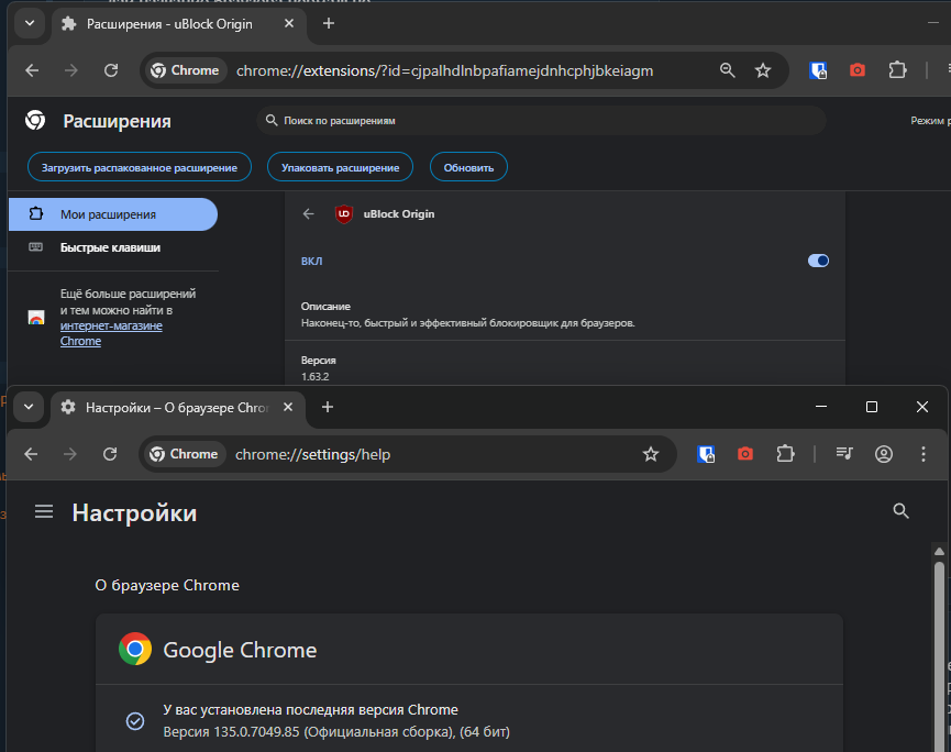 - В uBO: Полная поддержка EasyList, uBlock Filters, включая скрытие рекламных блоков.