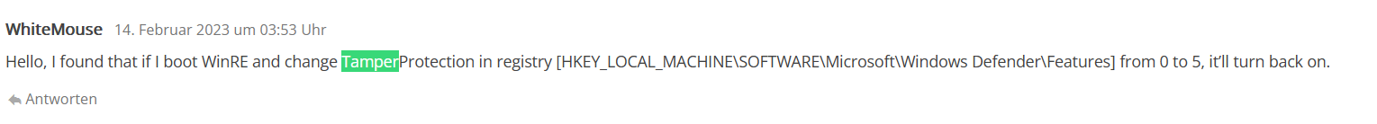 То есть, Tamper Protection включается обратно, кек.