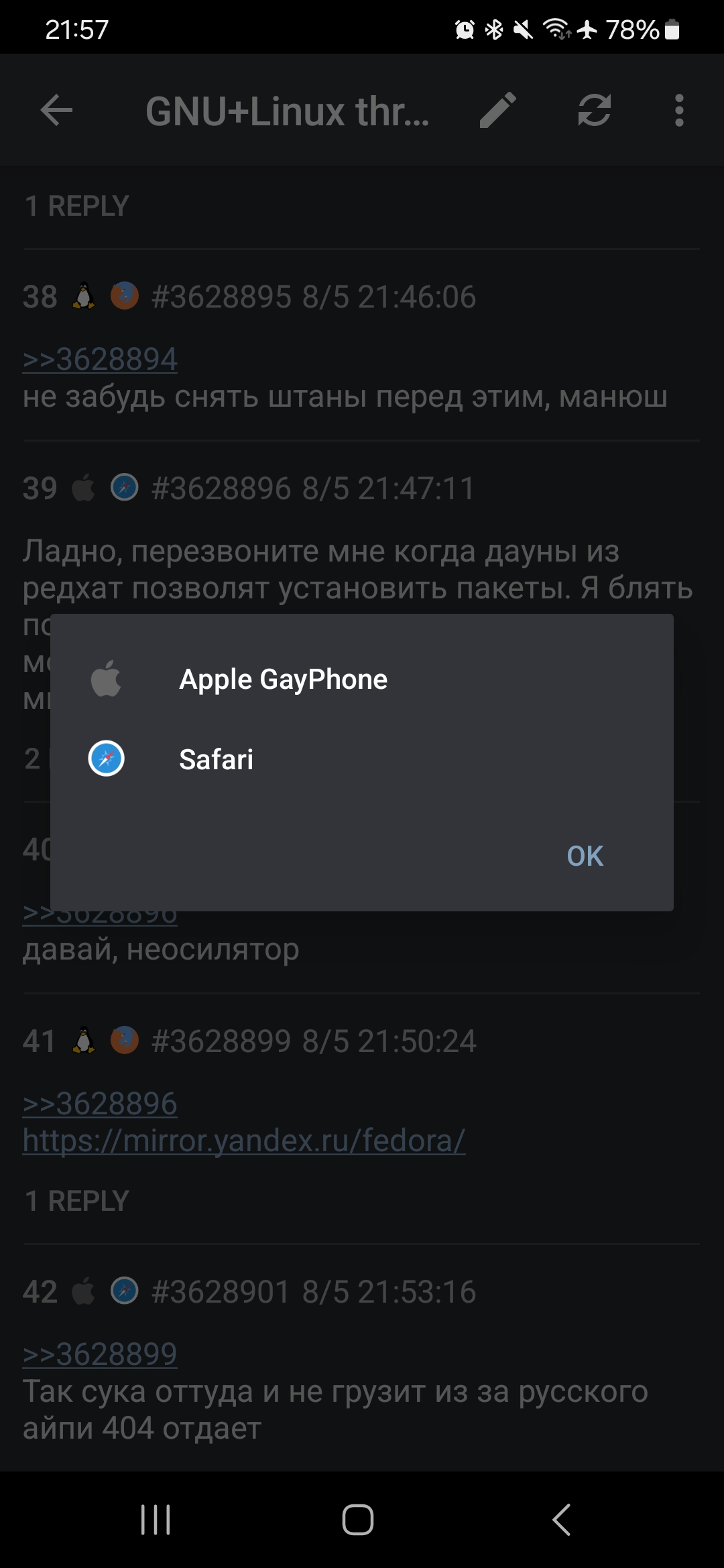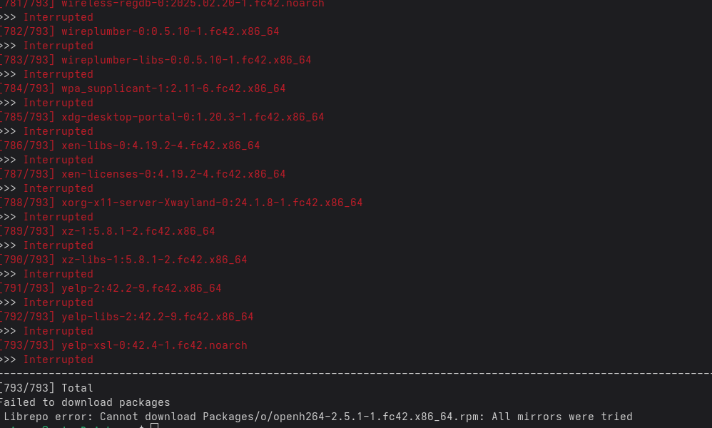 >>3630444 > Федору обновить из-за одного нескачивающегося пакета Хотя бы прочитать что это за пакет и забить хуй.