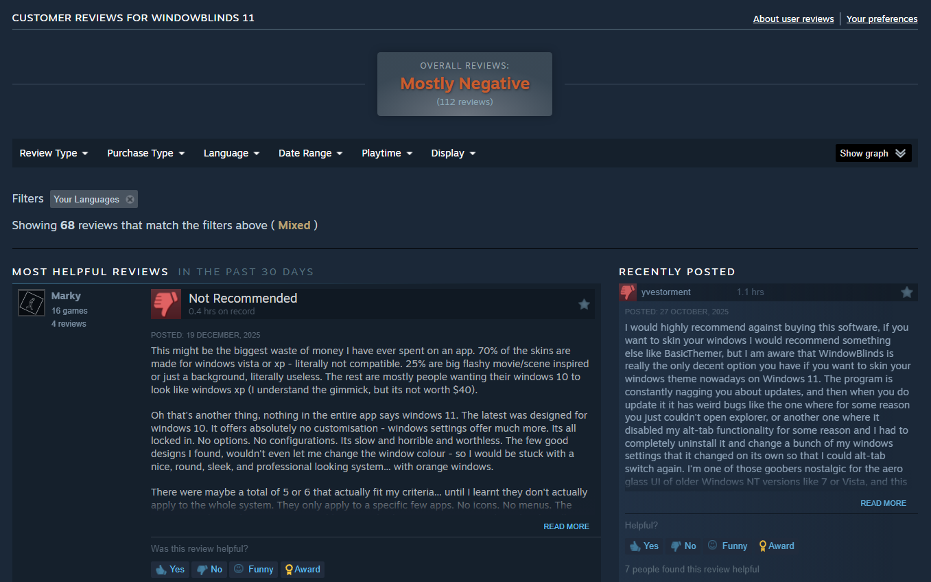 > >wine требует еще больше костылей (хотя куда больше), ебучий OBS при записи жрет 50 (!) ватт при перемещении курсора на статичном фоне с хардварной кодировкой на оптимизованых параметрах, рандомные фризы и баги в кросплатформенных приложений которые ни разу не встречал на линуксе