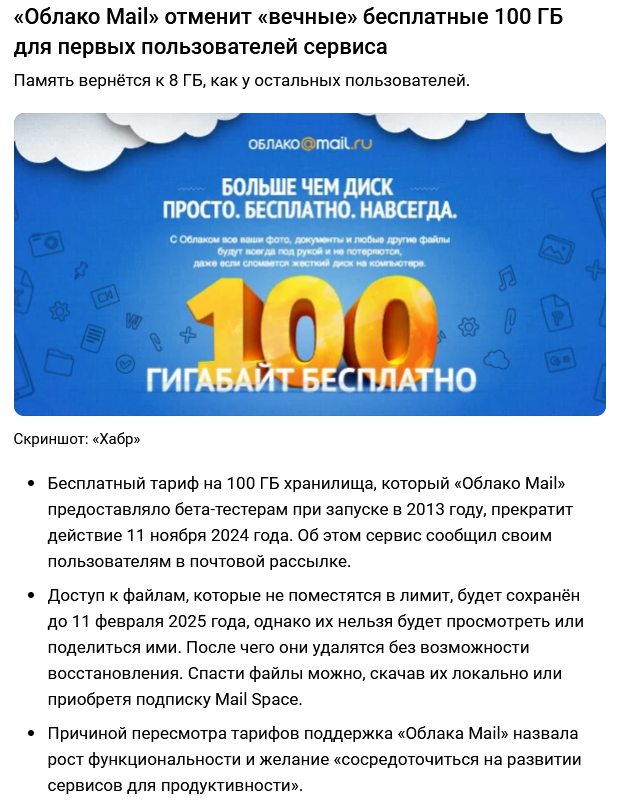 >>3584637 Сотрудник майл.сру, ты сначала прочитай закон о рекламе. В частности пункт о недобросовестной рекламе. Закон приоритетнее пользовательского соглашения. Теперь посмотри еще раз на пикрелейтед. Там говорится про 100 ГБ и про "навсегда". Немного не совпадает с реальностью, да?