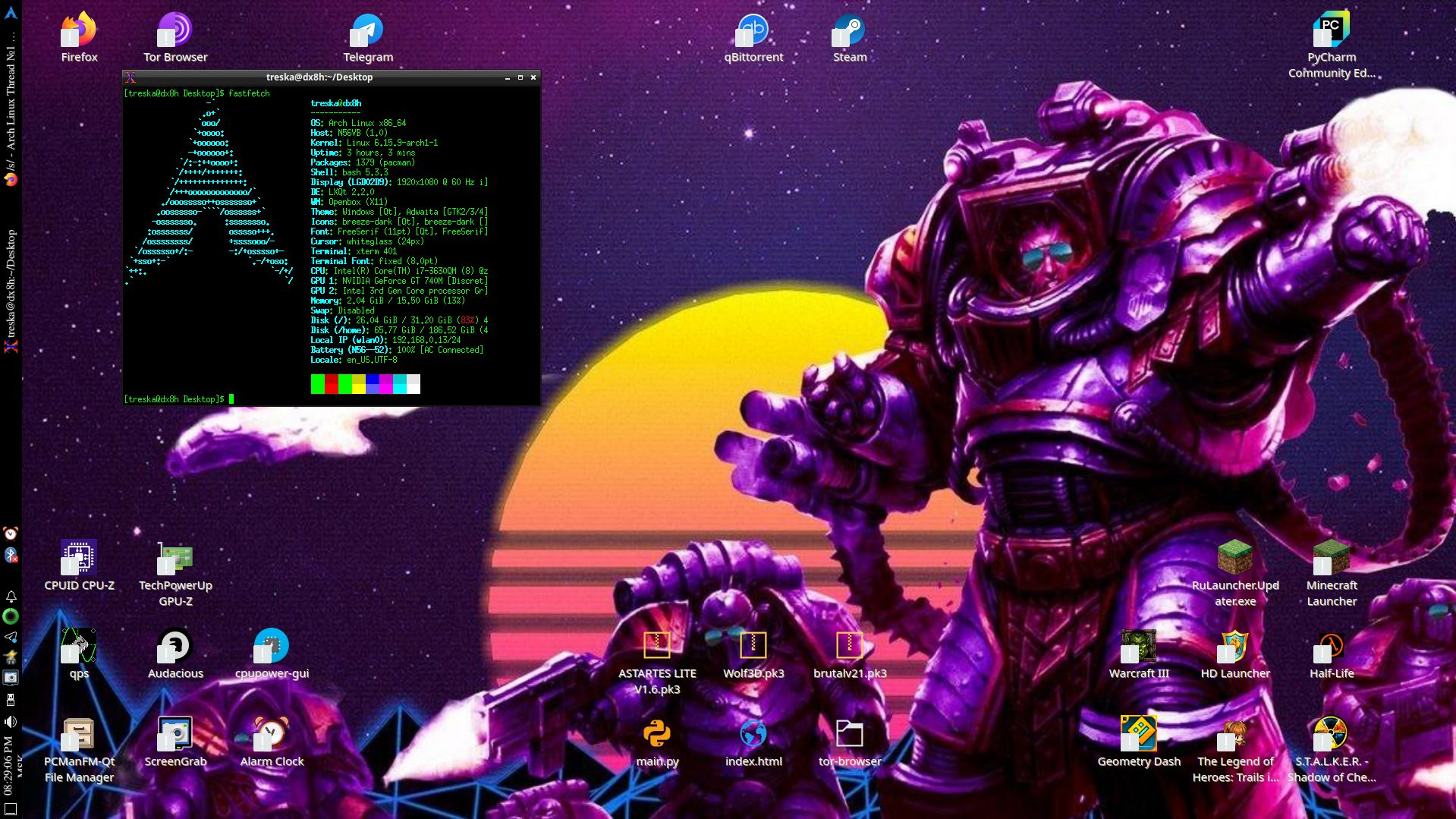 Предыстория: есть комп на зеоне с 14 ядрами который и видеокартой 1080ti с кучей оперативки и все такое. Я все игры поиграл на нем какие хотел, сегодня почистил от пыли и отвезу младшей сестре, пускай радуется. У нее дома сейчас тоже есть комп, там i5-4th какой-то, не помню точно цифры, 470 на 4gb и плашки 8+4 памяти. Это чудо планирую забрать себе и вернуться на арч.