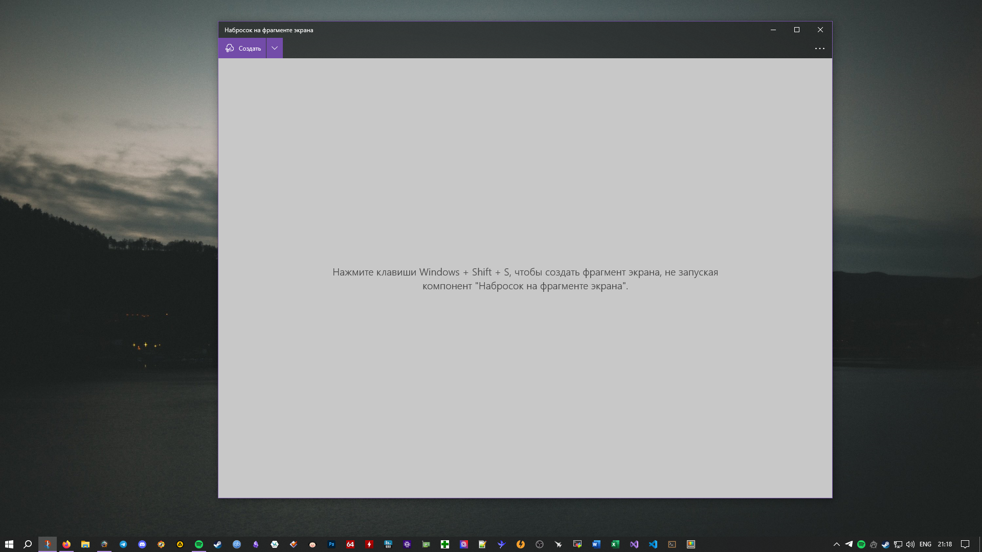 Раньше при нажатии Prt Scr появлялось такое меню позволяющее сделать скриншот, который сохраняется в буфер обмена. Недавно переустановил винду и теперь в буфер перестало вообще что-либо сохраняться, хотя меню появляется. Может кто-то сталкивался с сей проблемой? Единственный рабочий способ сделать скришот остался с помощью Windows + Prt Scr, но этот вариант всегда делает сриншот всего экрана, так ещё и сохраняет его в отдельную папку 'Снимки экрана' - очень неудобный вариант для меня.