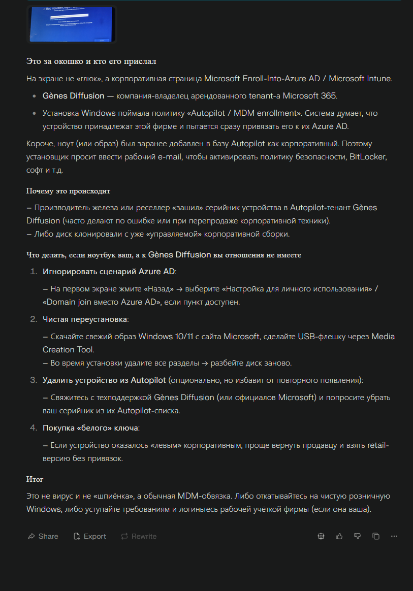 >>3637943 >Откати систему ёптать! Выбери дату до того, Не поможет. Ему теперь только переустанавливать с низкоуровневым форматированием всех дисков и десятикратной передачи нулями их всех. При этом никакие данные лучше не сохранять вообще, они тоже могут быть скомпрометированы и даже одна сохранённая картинка может заново зашварить всю новую систему теми же зондами, что сейчас живут в него в этой системе. В идеале, конечно, лучше всего выкинуть нахуй весь компьютер и купить новый. И провайдера поменять вместе с роутером. Да и переехать на другой адрес тоже лишним не будет, кстати говоря.