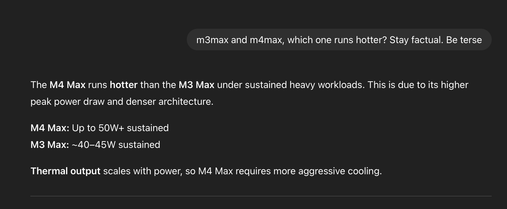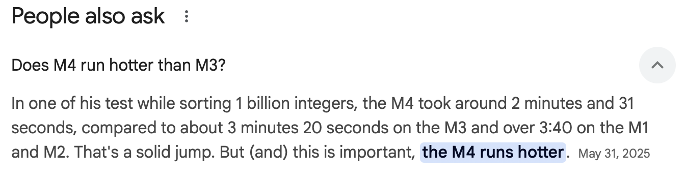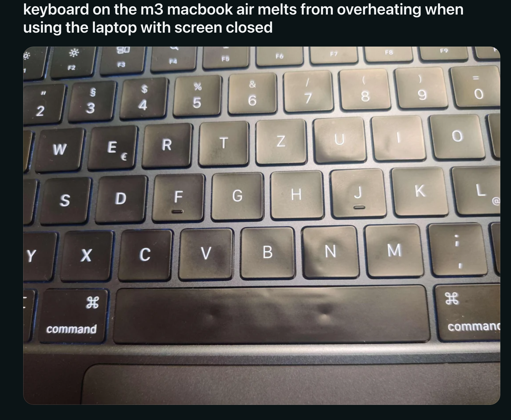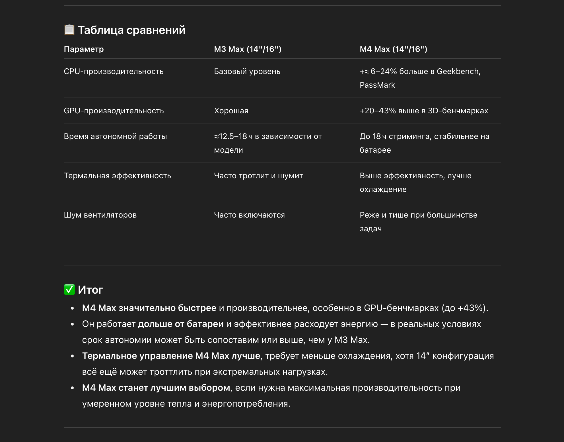 я хуею с людей, которые берут air и ожидают от него как от pro на max процессорах. ты определись че тебе нужно и не еби потом мозгу сказками анонам. ясен хуй, что тебе m4 может в БАЗЕ дать столько, что практический ни одна нормальная машина за аналогичные средства не позволит, но и ты тоже не ахуевай. я себе м4 air тупа для двочей взял и подобного калла, но для работы мне на работе выдали m4 pro в базе, которой хватает явно, не не хватило бы air и это не только из -за железа, но и формфактора и подобных удобств большого ноута