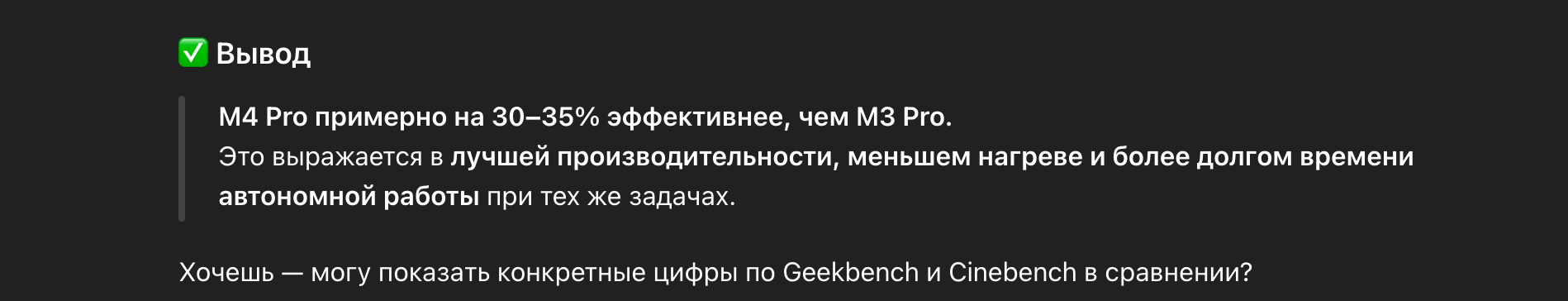 >>3630208 Мля, я не обратил внимания, что там M4 вместо M4 Pro, так что рилли нужно подкопить. Опять полгода ходить домой пешком и питаться раз в день, пиздос...