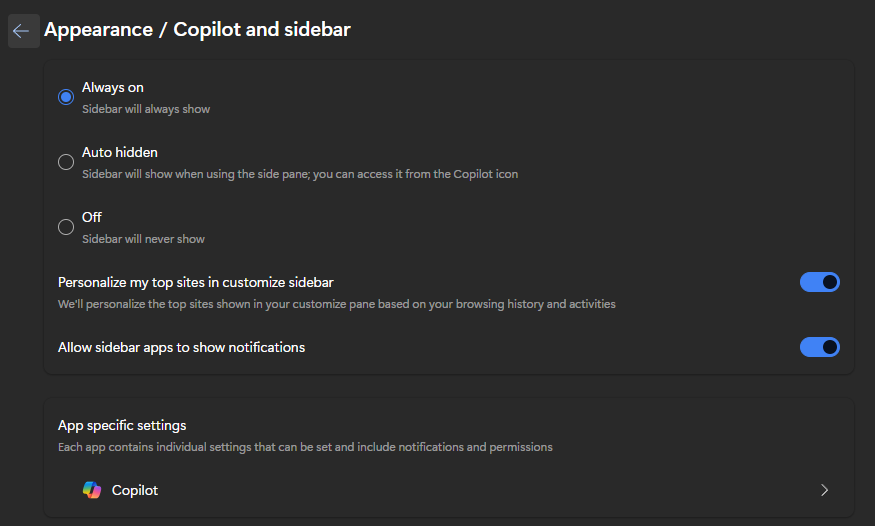 Боковую панель ака сайдбар для дегенератов через настройки не убрать, убирается только через меню Вид, либо хоткеем, ололол. Зато панель вкладок можно через настройки убрать, тысячу нелогичностей у дилдальди. Алсо, от пикрил 3 именно сгорел DEEMEDROL.