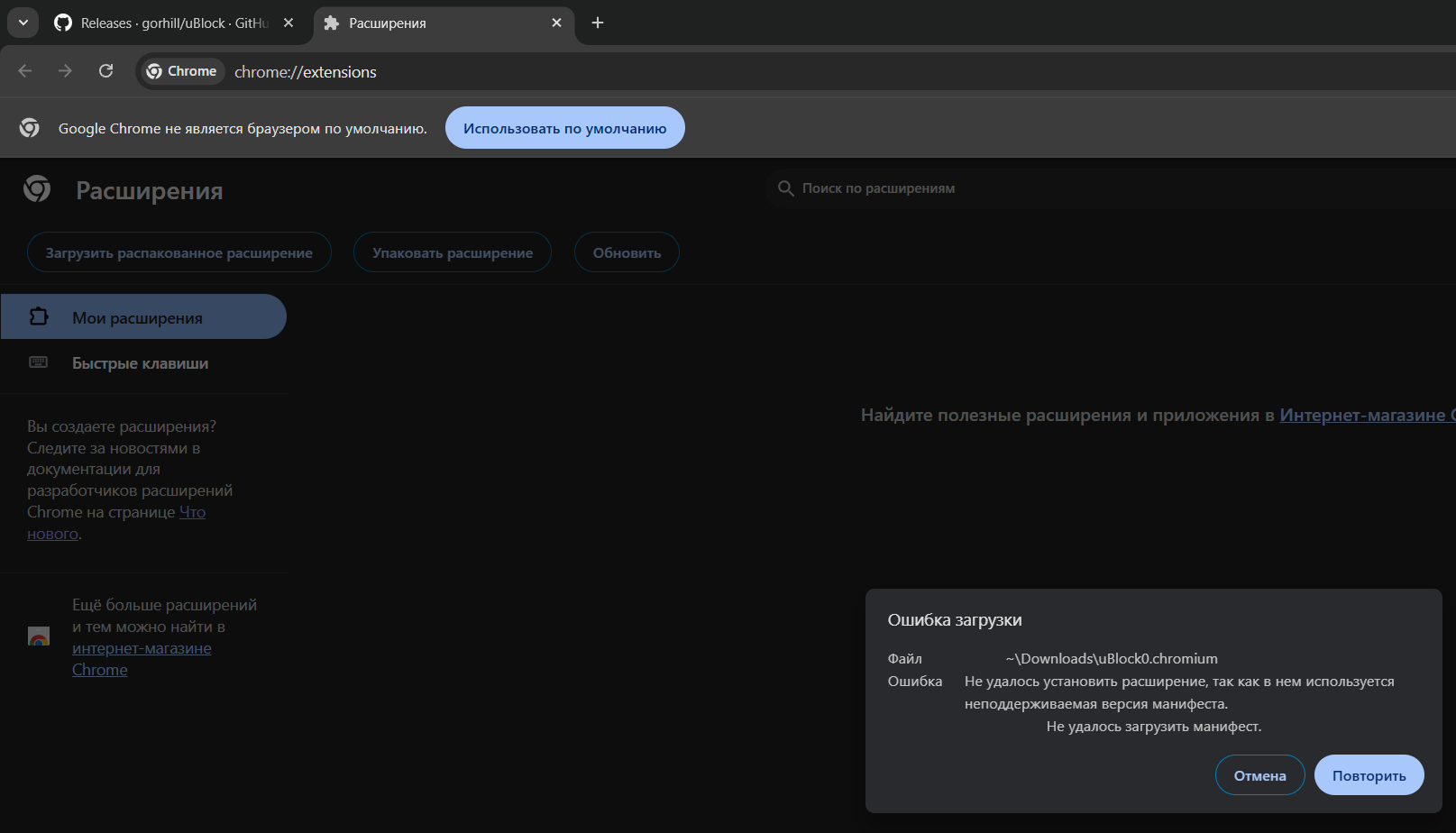 Плашка а-запрета отвалилась сразу на гугле и ангуглед хрониуме. В обоих случаях помогло включение Allow legacy extension manifest versions. Но при этом юблок полностью отвалился только на гугле а на ангугледе работает как обычно, даже ничего менять не надо. Я так понимаю он отвалится если обновить ангуглед до новой версии или что? (обновляю вручную) Почему тогда а-запрет отвалился сам по себе на ангугледе? Какая-то странная хуйня.