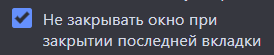 Ещё одна особенность дилды: если включена пикрил 1 опция и пикрил 2 опция, то последняя оставшаяся вкладка в виде экспресс-панели не закрывается СКМ. Если же пикрил 2 опция отключена, но при варнинге закрытия браузера ты решил остаться в браузере, то при нажатии СКМ на оставшуюся вкладку в виде экспресс-панели она закроется, лул. И это, кстати, забаговано, новая вкладка при нажатии на плюсик и калтекстное меню после такого иногда не открывается.