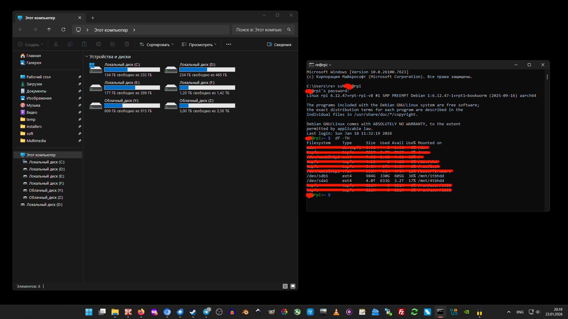 >>3624521 (OP) Файлопомойка на распбери пю4. Два HDD через usb докстанцию. 1тб и 4тб. SFTP сервер. Доступ с ПК, ведроида, планшета. С любого устройства, на который можно установить sftp клиент. Во время поездок арендую у провайдера белый айпишник и пользуюсь как обычно. В будущем заменю на минипк с n150. В общем я крутейший админ локалхоста.