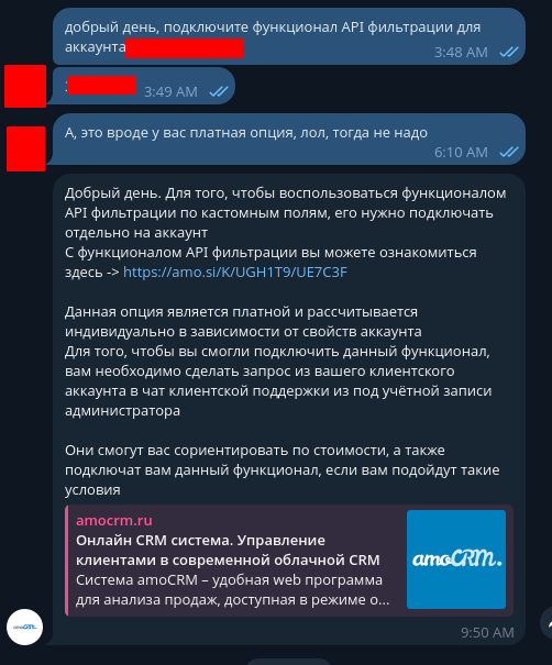 >>3628911 (OP) Обычное ограничение для апишек. А что ты хотел-то? Хочешь по тысячу запросов делать - оформляй коробочный битрикс. Облако тебе никто дудосить не позволит.